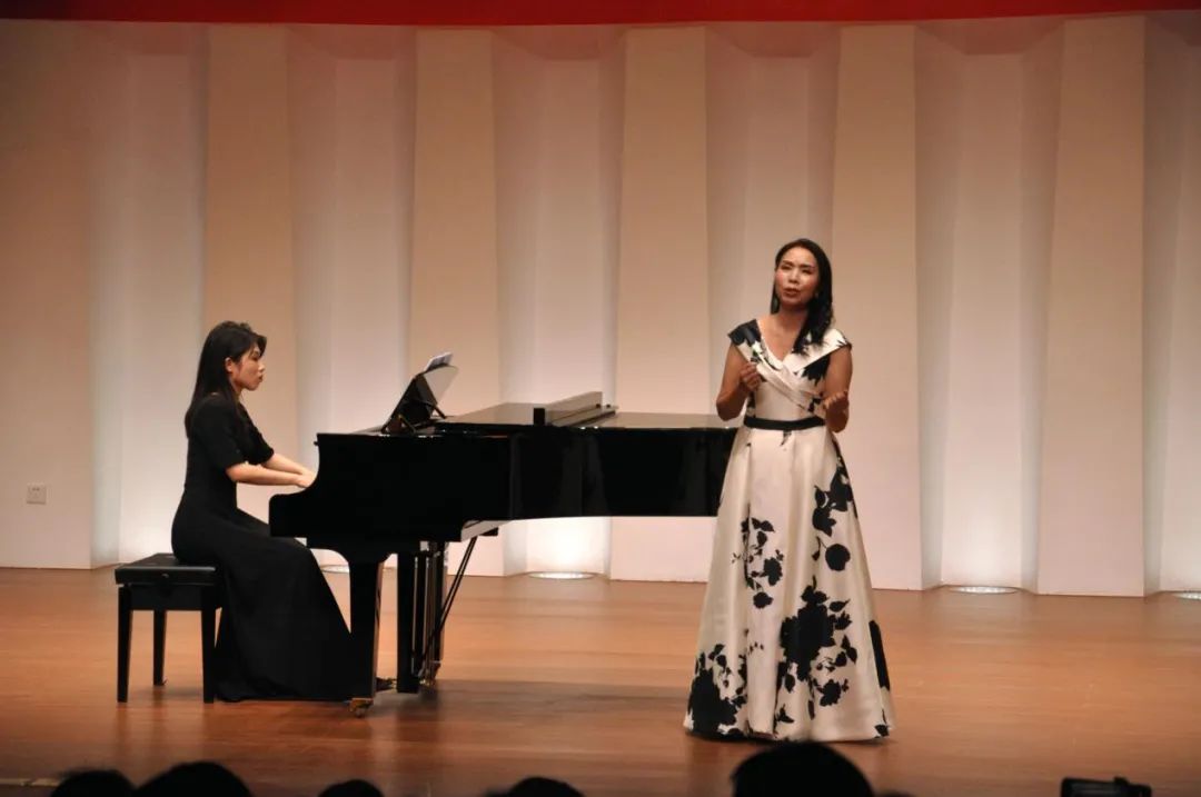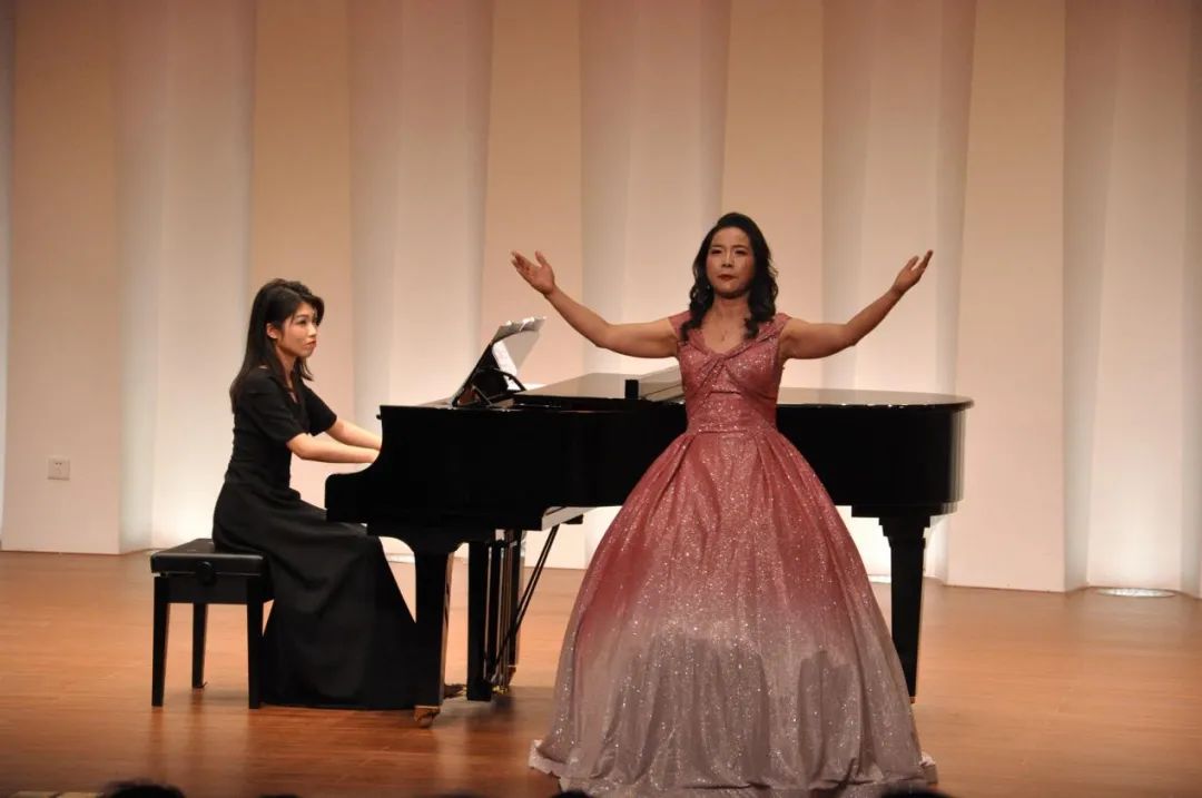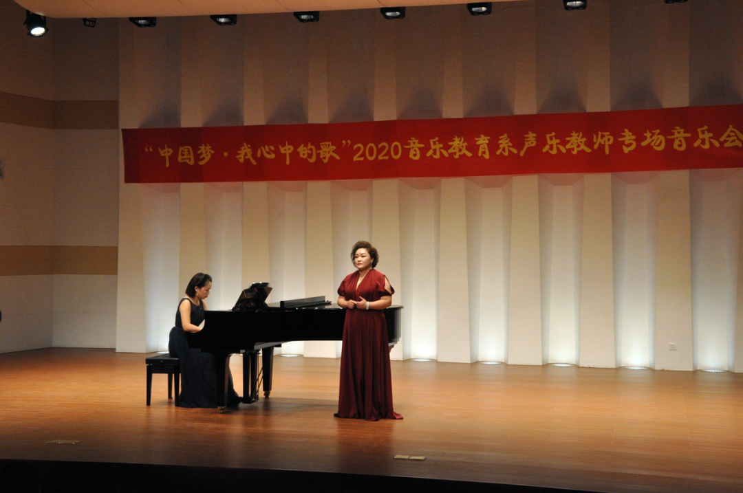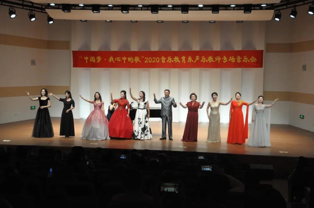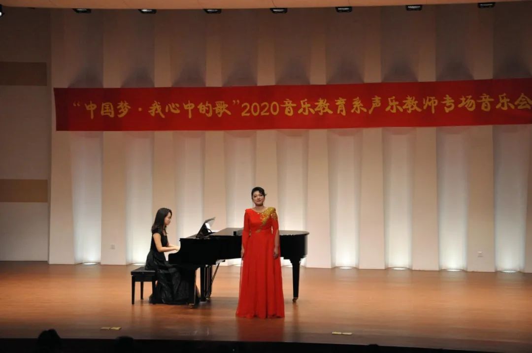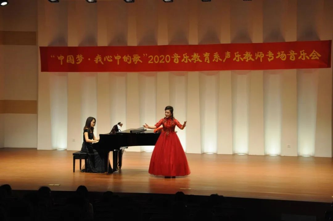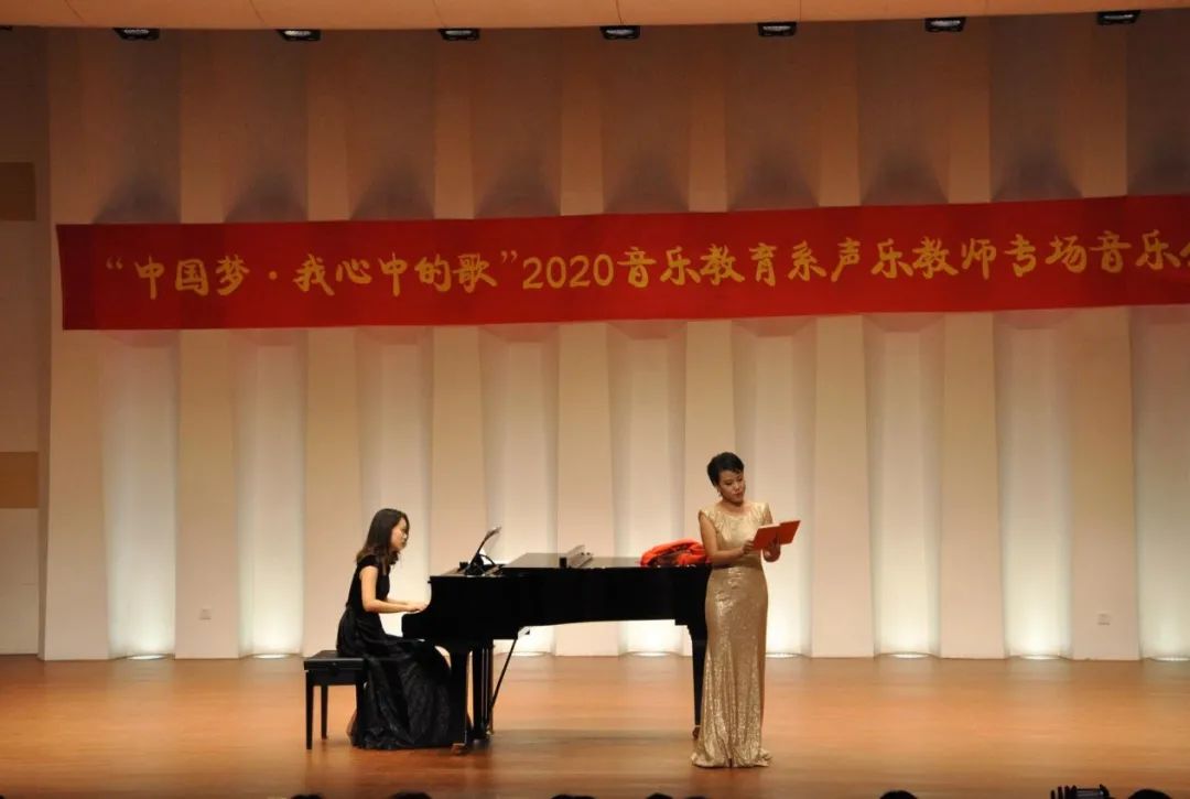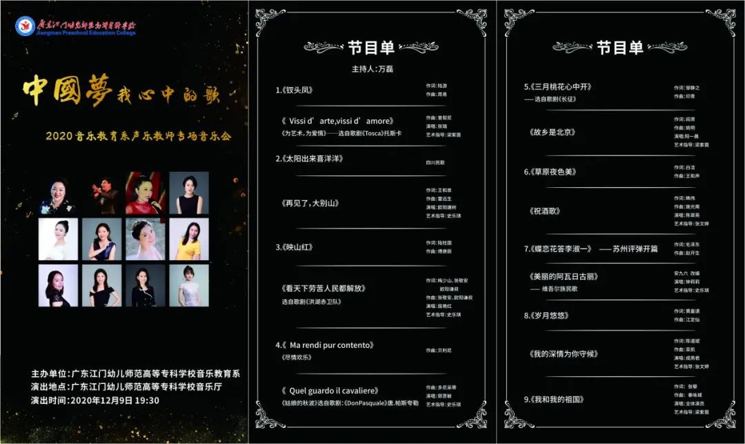 为贯彻落实十九届五中全会精神,营造健康向上的校园文化氛围,陶冶学生艺术情操,搭建声乐演唱交流的平台,2020年12月9日晚上,广东江门幼儿师范高等专科学校隆重举办2020“中国梦·我心中的歌”音乐教育系声乐教师专场音乐会。现场座无虚席,掌声连连。此次音乐会是江门幼专建校以来在音乐厅举行的首场演出活动。音乐教育系教师以不同类型、不同风格的表演曲目,向观众展示音乐艺术的魅力,展现了音乐系教师风采,让大家感受作为一个艺术教育工作者、作为一个音乐人所应具备的专业素养与才能。整场音乐会由音乐教育系十二位教师倾情演绎了9个节目,共18首歌曲。张瑞用《钗头凤》、《为艺术,为爱情》诉尽了千百年来追求爱情路上的凄美悲壮。欧阳建树演唱的《太阳出来喜洋洋》《再见了,大别山》表现了中华民族热爱生活、尊敬英雄的情感。屈艳红用《映山红》《看天下劳苦人民都解放》诠释了用献血染红国旗、用生命谱写赞歌的革命精神。无论是阳一晨演唱的《故乡是北京》,还是钟莉莉演唱的《蝶恋花·答李淑一》,亦或是成燕君演唱的《岁月悠悠》,都在古典唱腔与现代音乐、中国音乐与西方音乐的碰撞中呈现出别样的魅力。