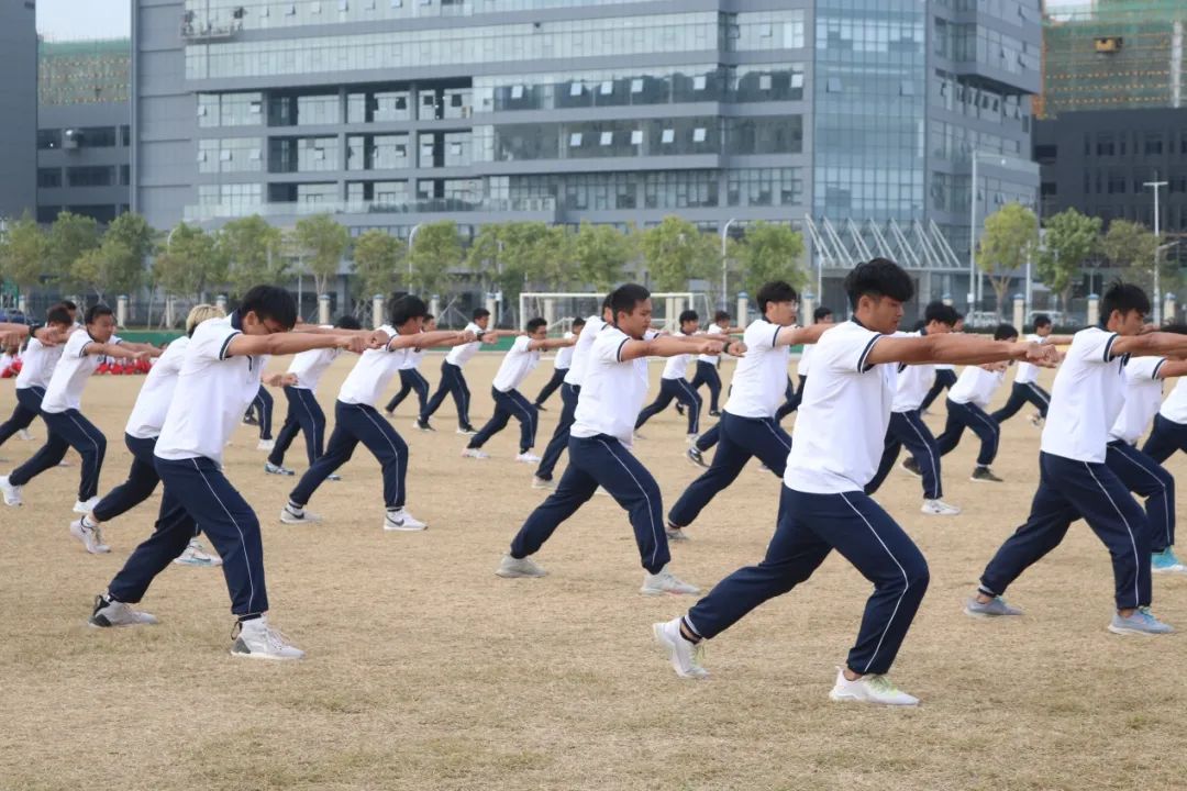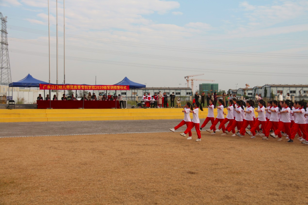 熟悉的分列式旋律响起,由2020级全体新生组成的十四个方阵,沿着操场依次经过主席台。整齐划一的方阵、气势磅礴的口号、刚劲有力的摆臂、步调一致的踢腿,举手投足间都展示着幼专学子坚毅果敢的风采。女子擒敌术方阵、男子应急棍方阵、男子擒敌术方阵,用自己高昂的士气和默契团结的配合赢得了各位领导、老师和2020级全体同学的阵阵掌声。