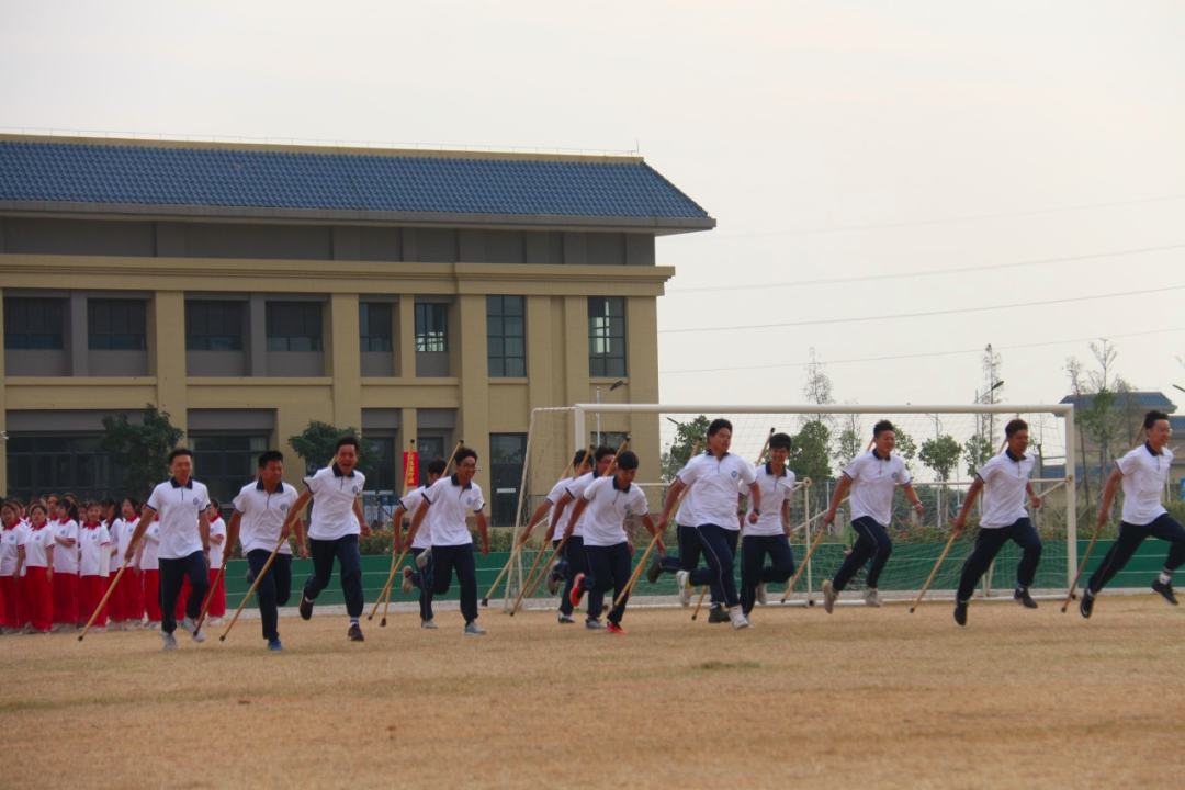 男子应急棍方阵,用他们矫健的身姿,干净利落的招式,展示幼专男儿好担当!